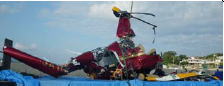 海中から引き揚げられたロビンソン式R44Ⅱ型