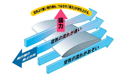 するとあら不思議、何と翼を上に持ち上げる揚力が発生するのです。