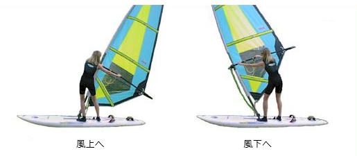 これによって、今までボードの内側にあった推進力が、ボードの外側(風下側)に掛かります。