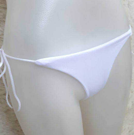 無地 柔らか ハイレグ 紐パン ビキニ 水着 L 白 ホワイト