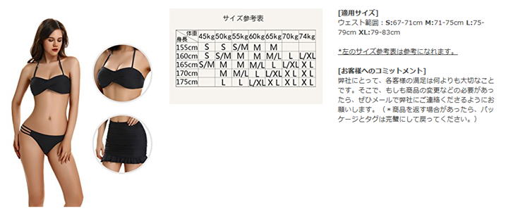 セット内容:ビキニ(上下) カラー:ブラック(黒) サイズ:M トップバスト:72-80cm アンダーバスト:60-67cm ブラカップ:Aカップ/Bカップ/Cカップ ウエスト:58-64cm ヒップ:82-90cm