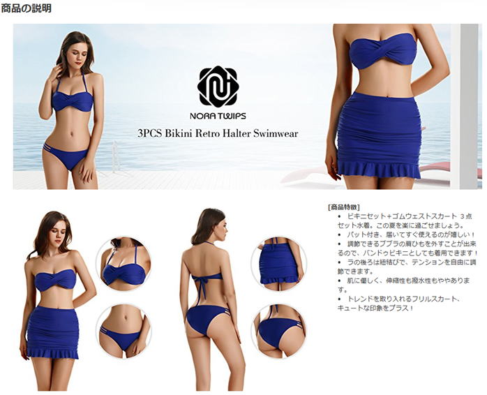 ビキニ上下とゴムウェストスカートの3点セット